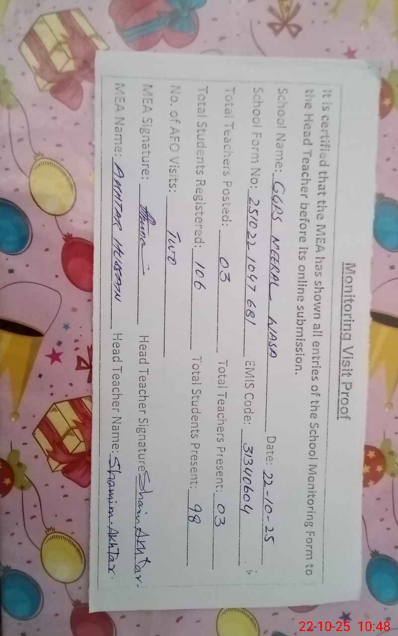 | EMIS Code: 31340604 | Name of School: GGPS MEERAL WASA | |||