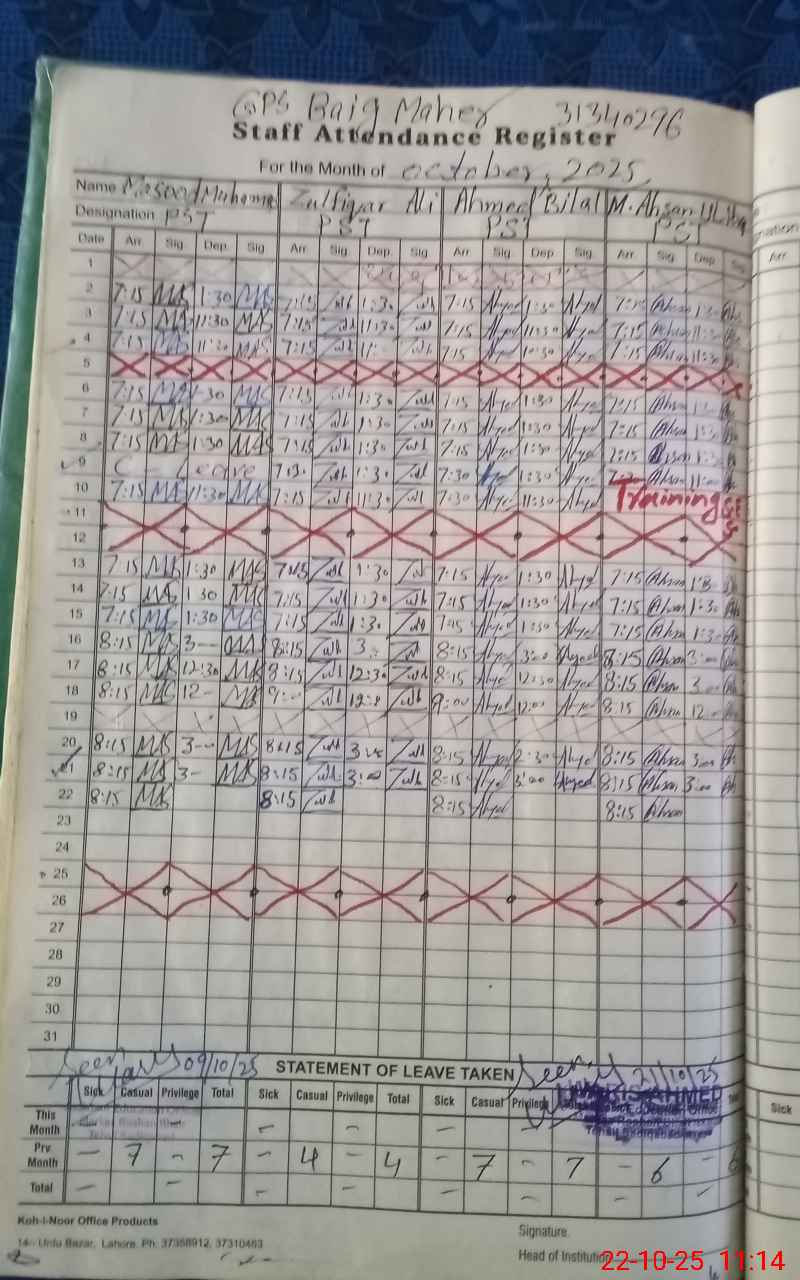 | Name: MA**** MU**** Designation: (School Headmaster's/Headmistress's) PST Phone/Cell Number: 03**** |