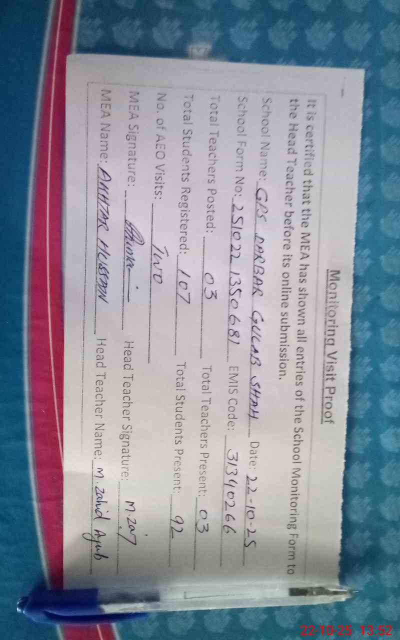 | EMIS Code: 31340266 | Name of School: GPS DARBAR GHULAB SHAH | |||