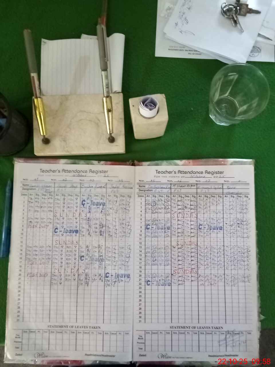 | CNIC | Full Name | Designation | R/C | Absence during last cal. month |