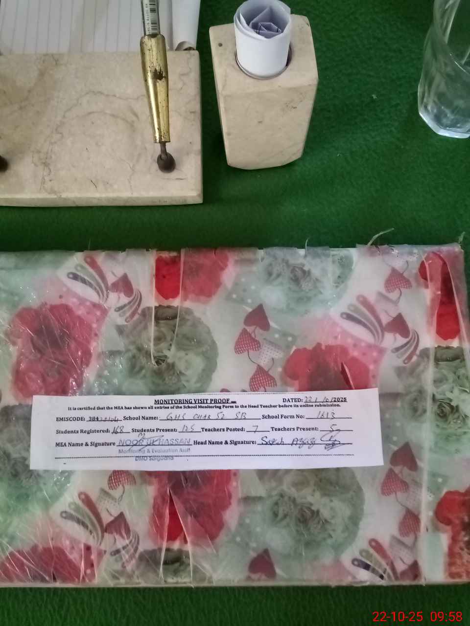 | Attendance Register | Head Teacher | MEA with School | Visit Proof |