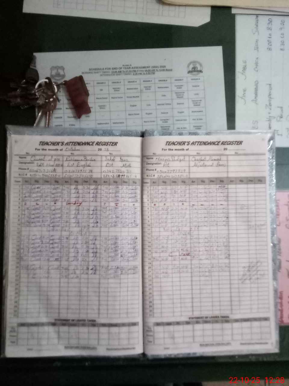 | CNIC | Full Name | Designation | R/C | Absence During Last Calender Month |