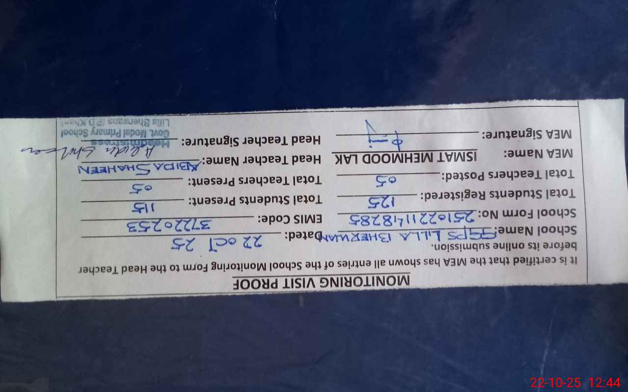 | Certified that this School was Inspected by the Undersigned MEA/DMO Today and the Information Stated Above is as Per Record. | |||||