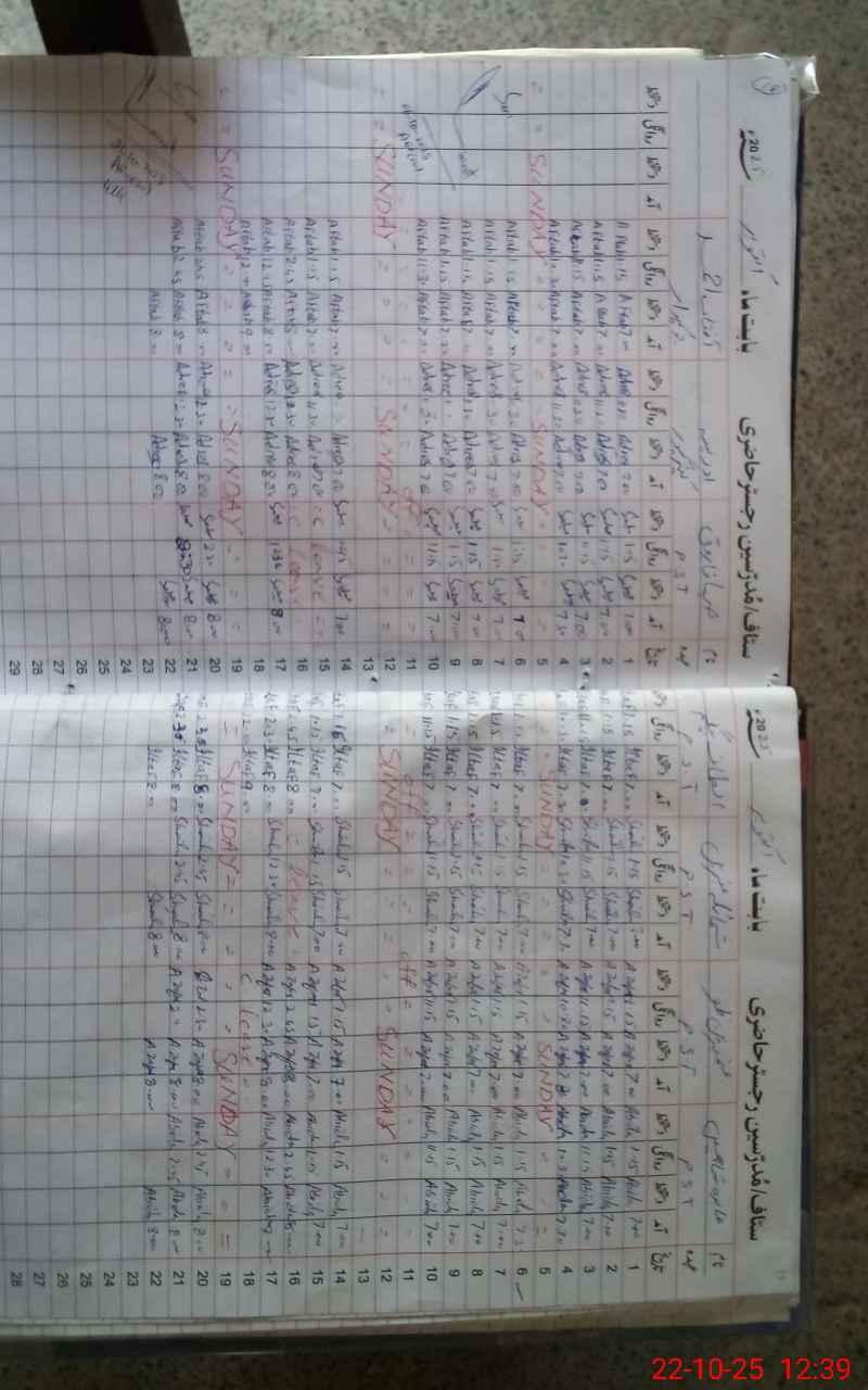 | CNIC | Full Name | Designation | R/C | Absence During Last Calender Month |