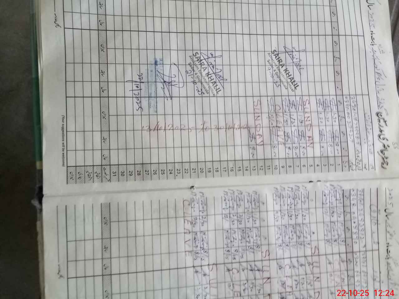 | CNIC | Full Name | Designation | R/C | Absence During Last Calender Month |