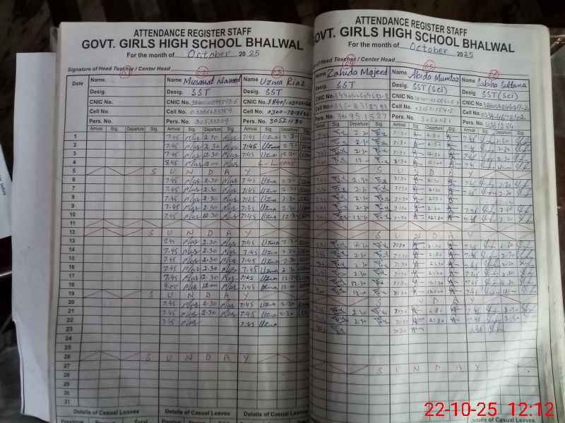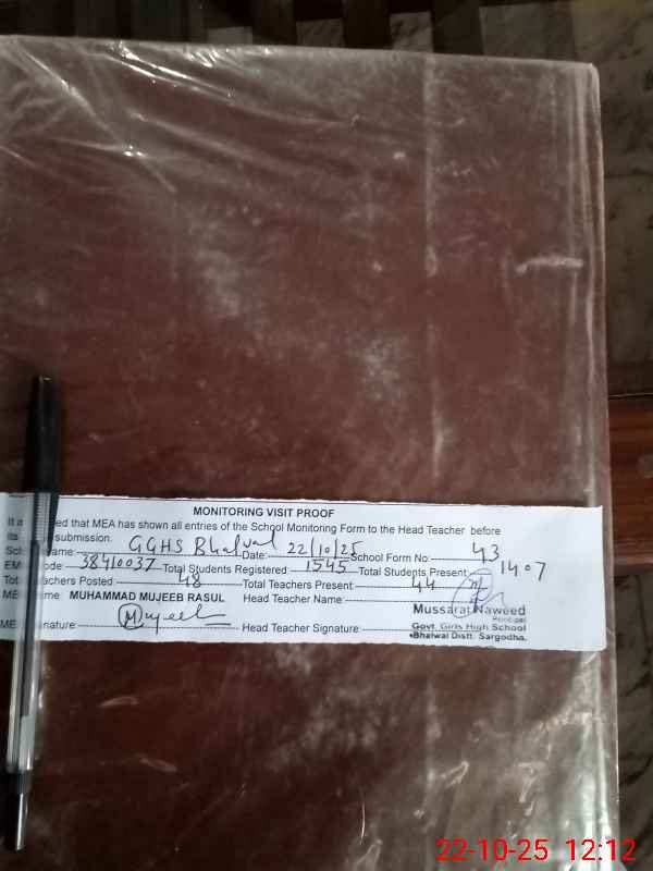 | EMIS Code: 38410037 | Name of School: GGHS BHALWAL | |||