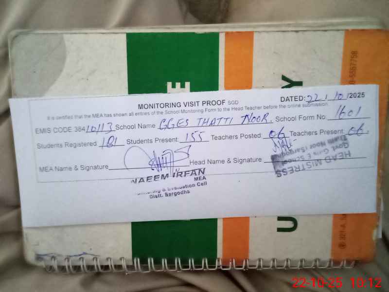 | EMIS Code: 38410113 | Name of School: GGES THATTI NOOR | |||