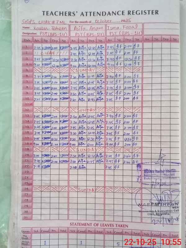 | Name: As**** An**** Designation: (School Headmaster's/Headmistress's) PST Phone/Cell Number: 03**** |