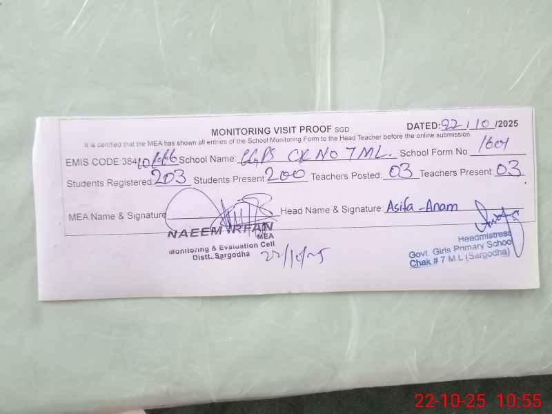 | EMIS Code: 38410666 | Name of School: GGPS CHAK NO.7 ML | |||