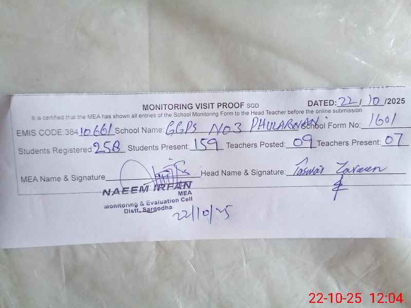 | EMIS Code: 38410661 | Name of School: GGPS NO. 3 PHULLARWAN | |||