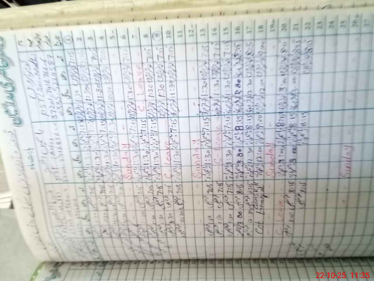 | Leave | Duty | Absent | Maternity | Medical | Ex- Pak |