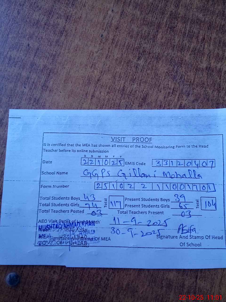 | EMIS Code: 33120407 | Name of School: GGPS GILLANI MOHALLAH JARANWLA | |||