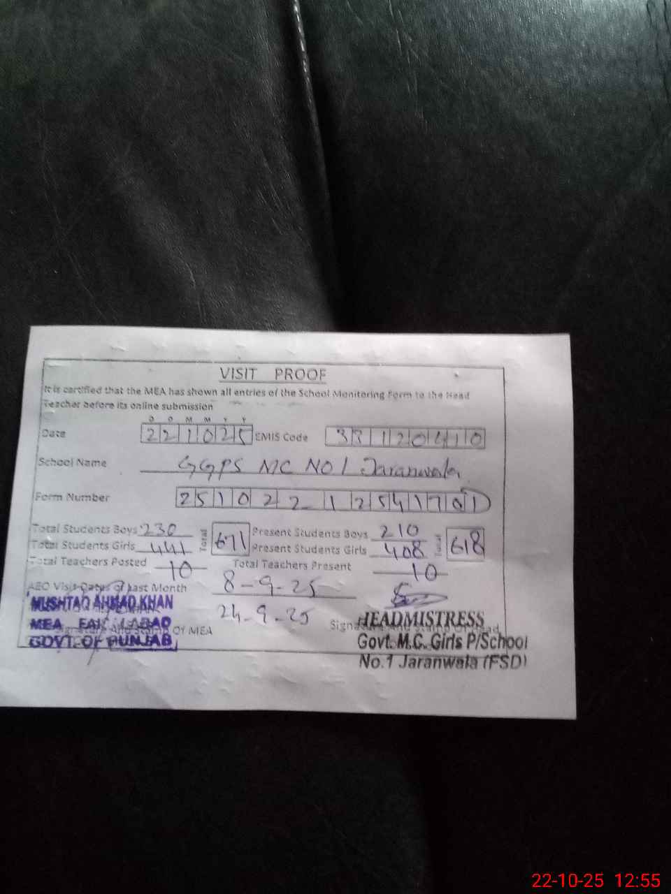 | EMIS Code: 33120410 | Name of School: GGPS MC NO.1 JARANWALA | |||
