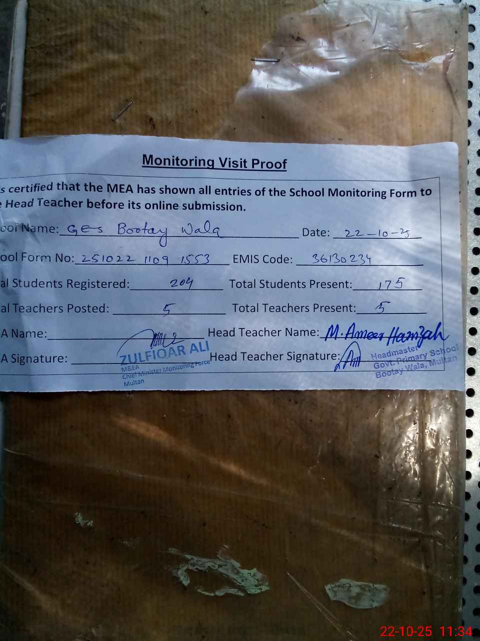 | EMIS Code: 36130234 | Name of School: GES BOTAY WALA P/ O GULZAR PUR | |||