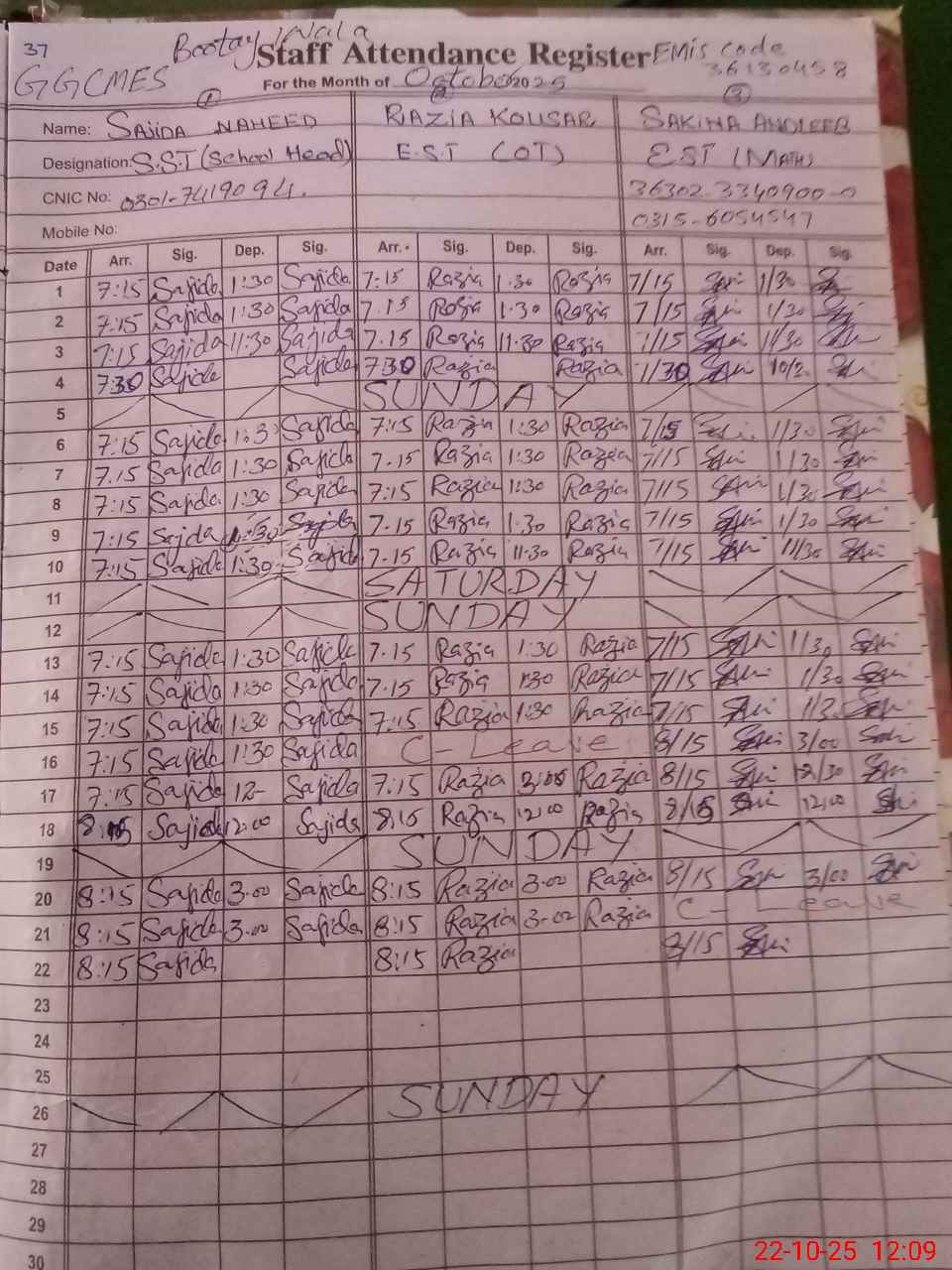 | Name: SA**** NA**** Designation: (School Headmaster's/Headmistress's) Incharge Head SST G Phone/Cell Number: 03**** |