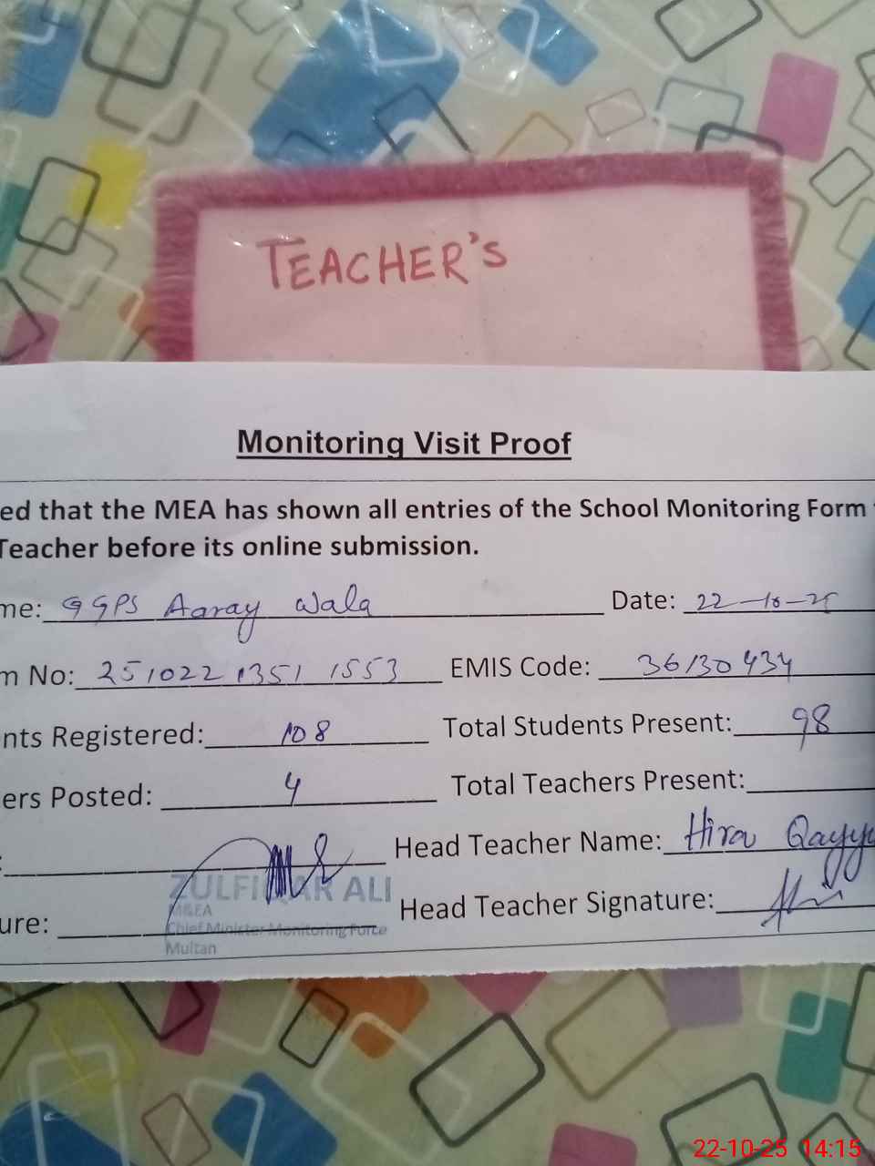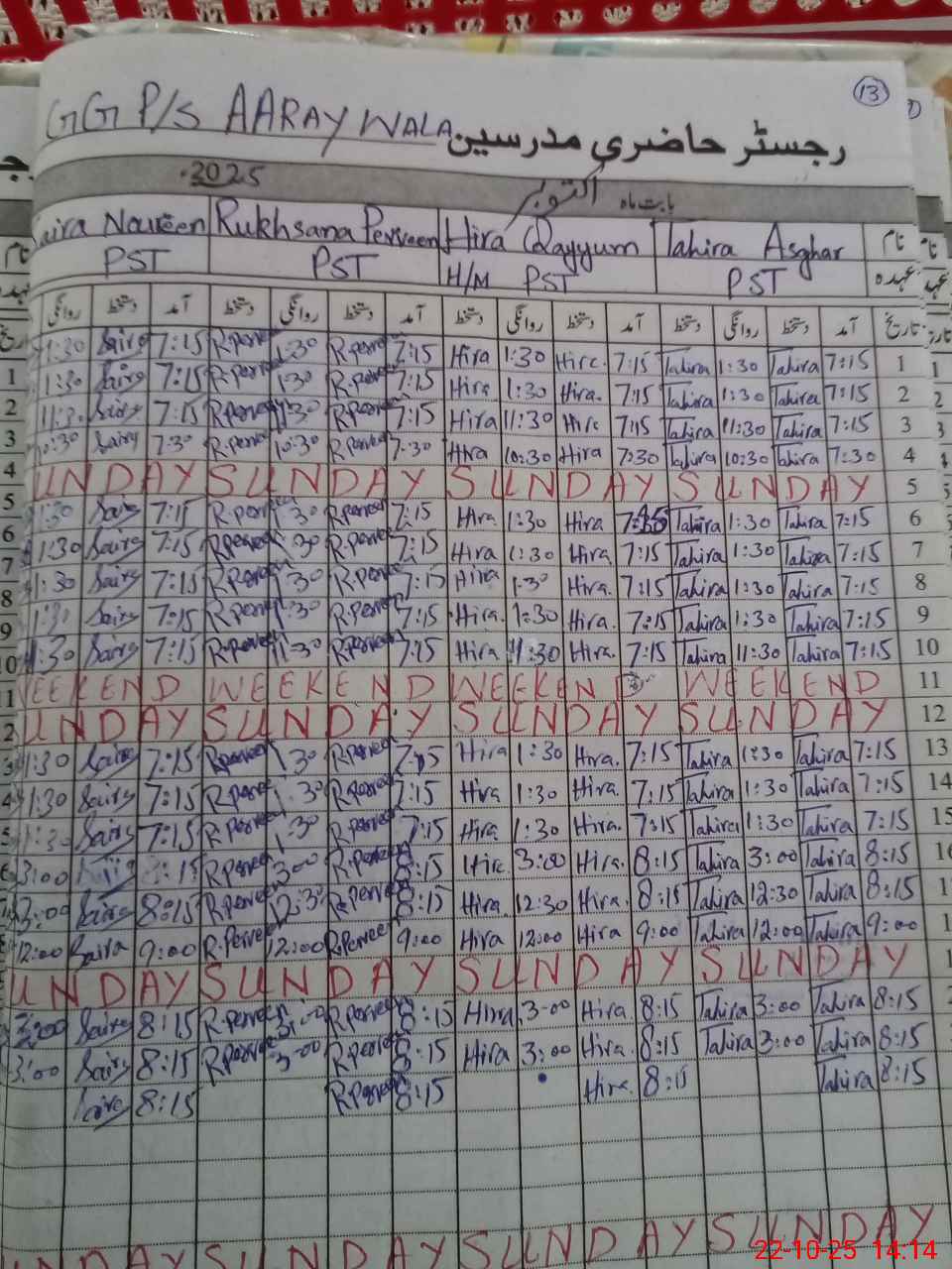 | EMIS Code: 36130434 | Name of School: GGPS AARAY WALA MUZA JHOK LASHAKAR PUR | |||