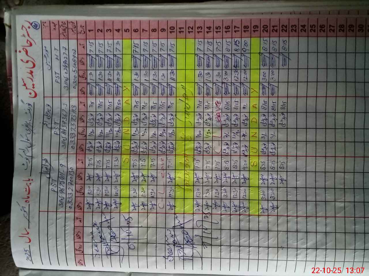 | CNIC | Full Name | Designation | R/C | Absence During Last Calender Month |