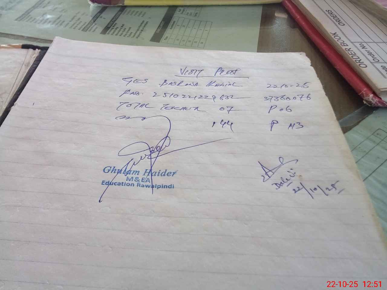 | Attendance Register | Head Teacher | MEA with School | Visit Proof |