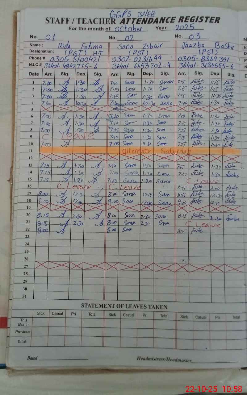 | Name: RI**** FA**** Designation: (School Headmaster's/Headmistress's) PST Phone/Cell Number: 03**** |