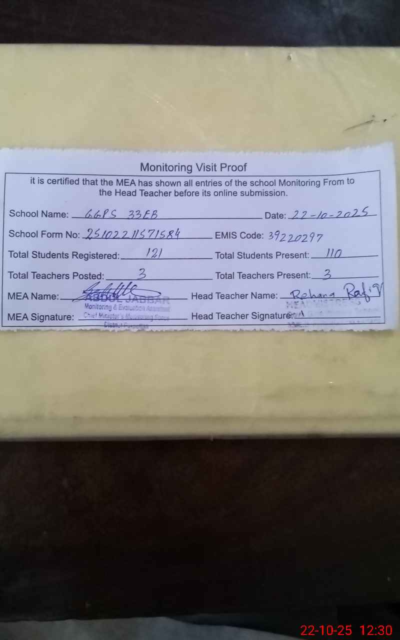 | EMIS Code: 39220297 | Name of School: GGPS 33 EB | |||