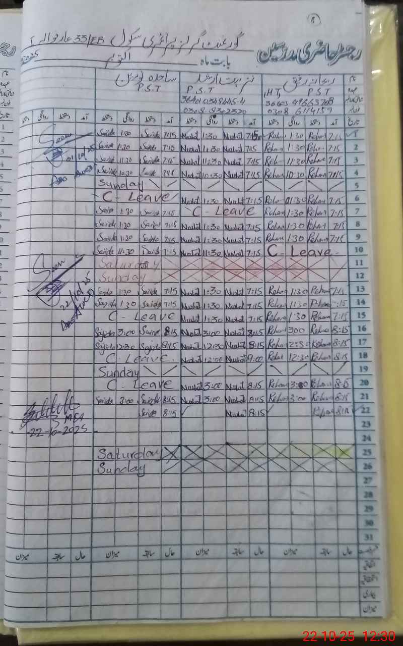 | Name: RE**** RA**** Designation: (School Headmaster's/Headmistress's) PST Phone/Cell Number: 03**** |