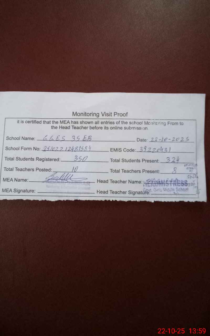| Certified that this School was Inspected by the Undersigned MEA/DMO Today and the Information Stated Above is as Per Record. | |||||