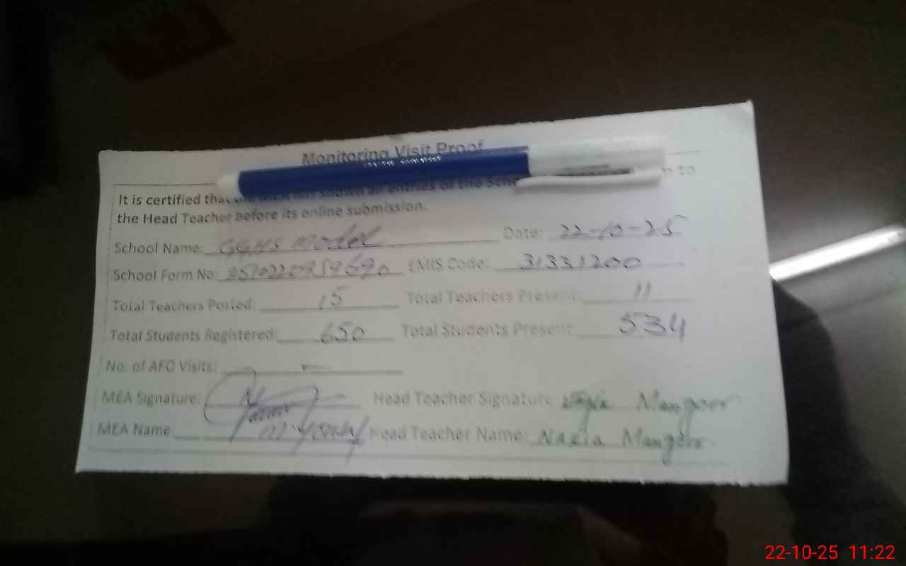 | Attendance Register | Head Teacher | MEA with School | Visit Proof |