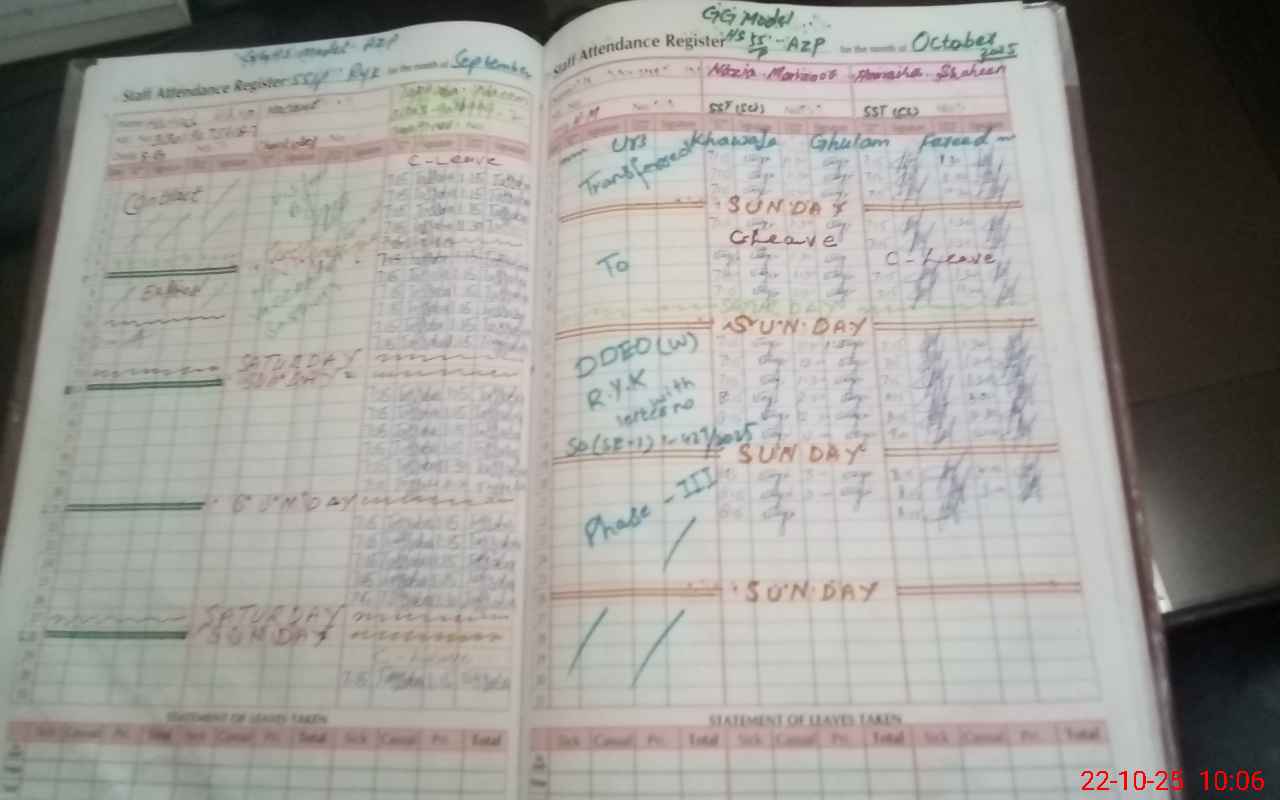 | CNIC | Full Name | Designation | R/C | Absence During Last Calender Month |