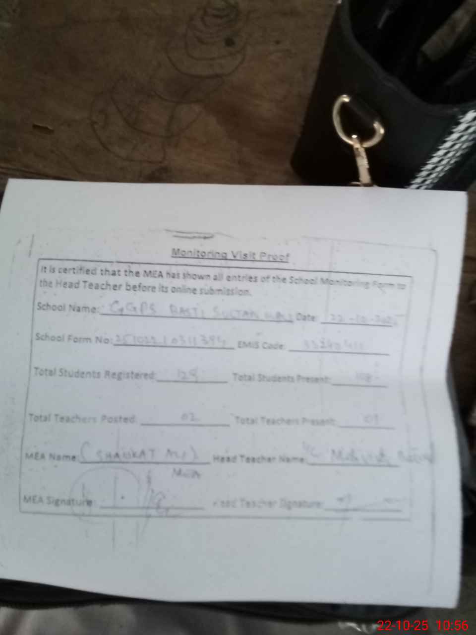 | EMIS Code: 33240411 | Name of School: GGPS BASTI SULTAN WALI | |||