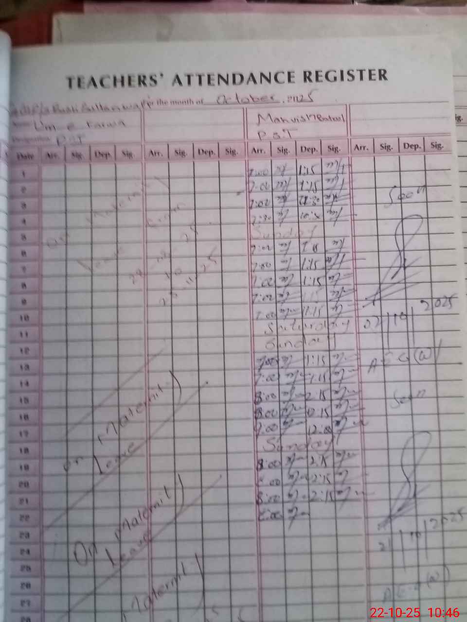 | Name: UM**** FA**** Designation: (School Headmaster's/Headmistress's) PST Phone/Cell Number: 03**** |