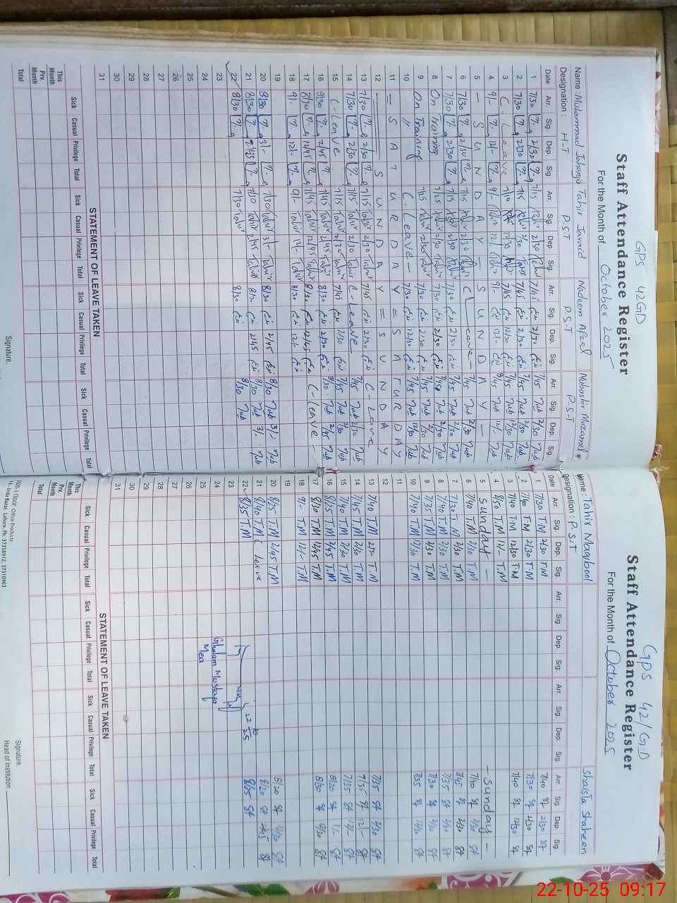 | Total no. of Classrooms: 9 No. of Classrooms Used for Teaching: 8 No. of Classrooms Storing Old Furniture, FTBs, etc: 0Comments if Any: Nominal roll for online attendance found contrary to current available students records Head teacher told that all enrolled students provided with free text books accordingly |