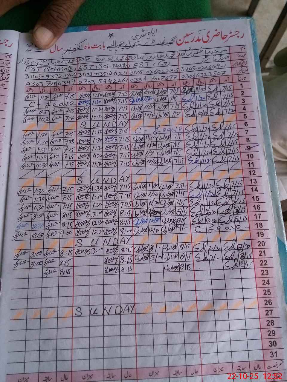 | CNIC | Full Name | Designation | R/C | Absence During Last Calender Month |