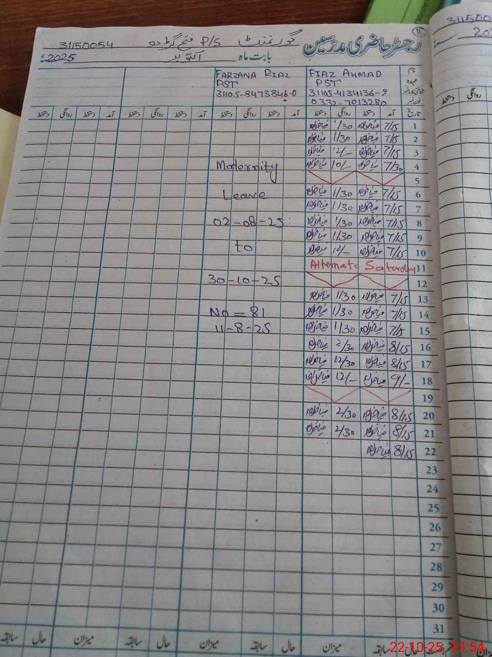 | 31**** | Fa**** Ri**** | PST | Regular | 30 | 0 | 0 | 30 | 0 | 0 | 0 | 0 | 0 | Maternity |
