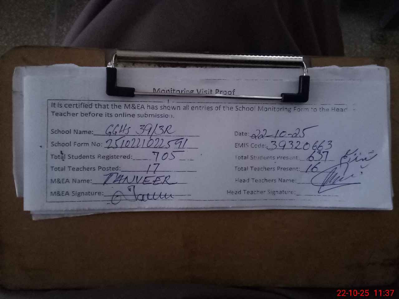 | EMIS Code: 39320663 | Name of School: GGHS CHAK NO. 39/3-R | |||