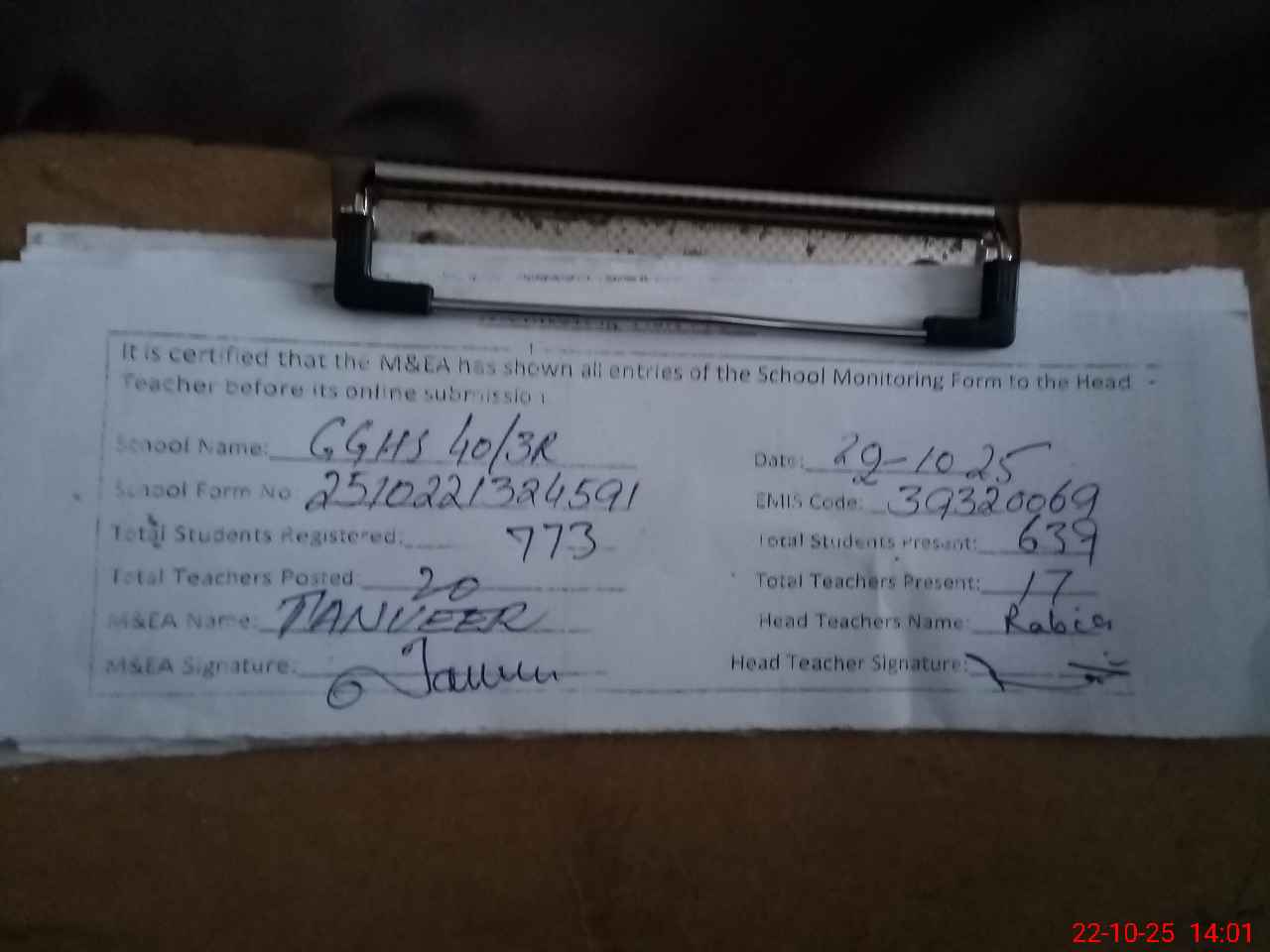 | Certified that this School was Inspected by the Undersigned MEA/DMO Today and the Information Stated Above is as Per Record. | |||||