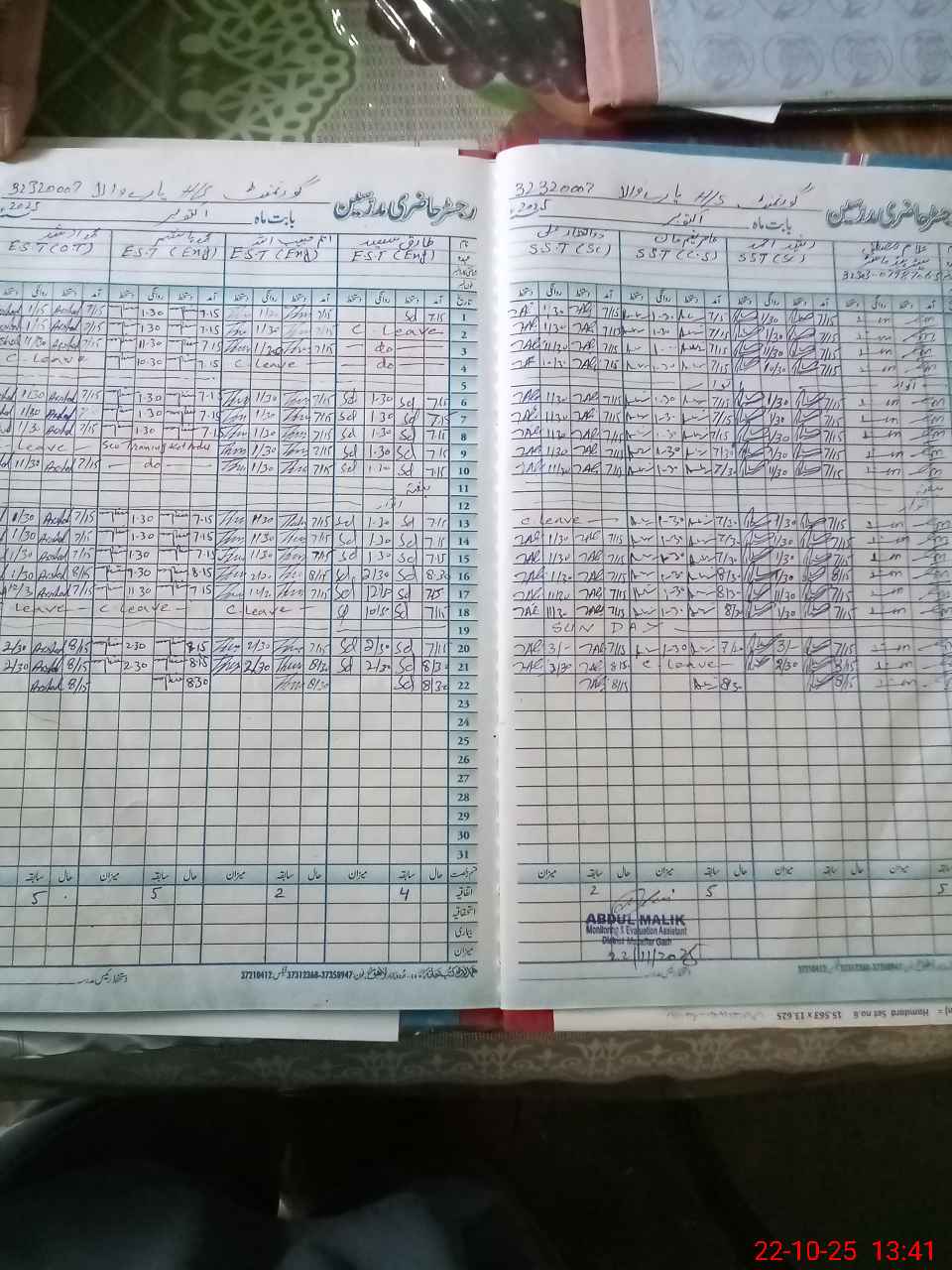 | CNIC | Full Name | Designation | R/C | Absence during last cal. month |
