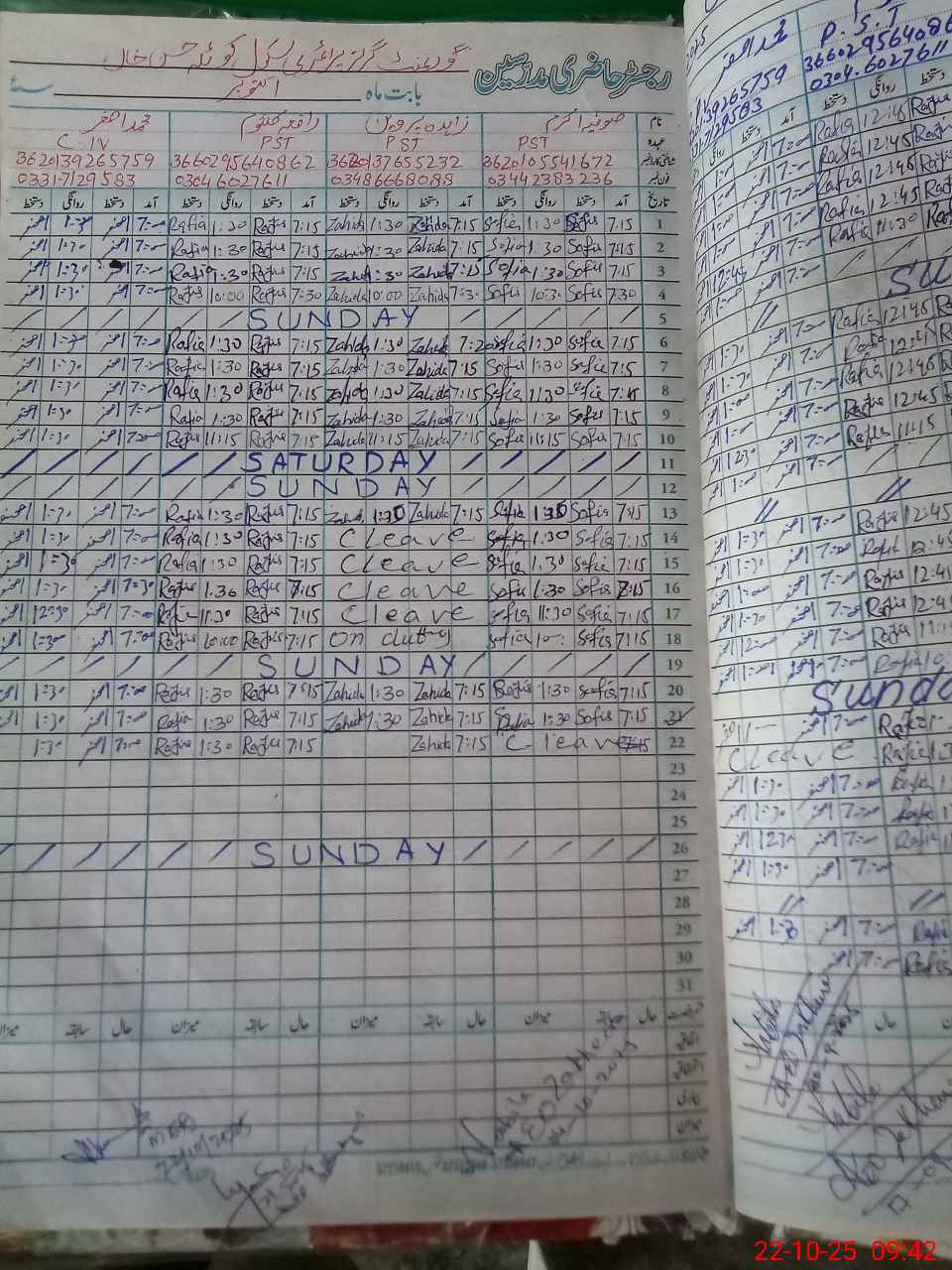 | CNIC | Full Name | Designation | R/C | Absence during last cal. month |