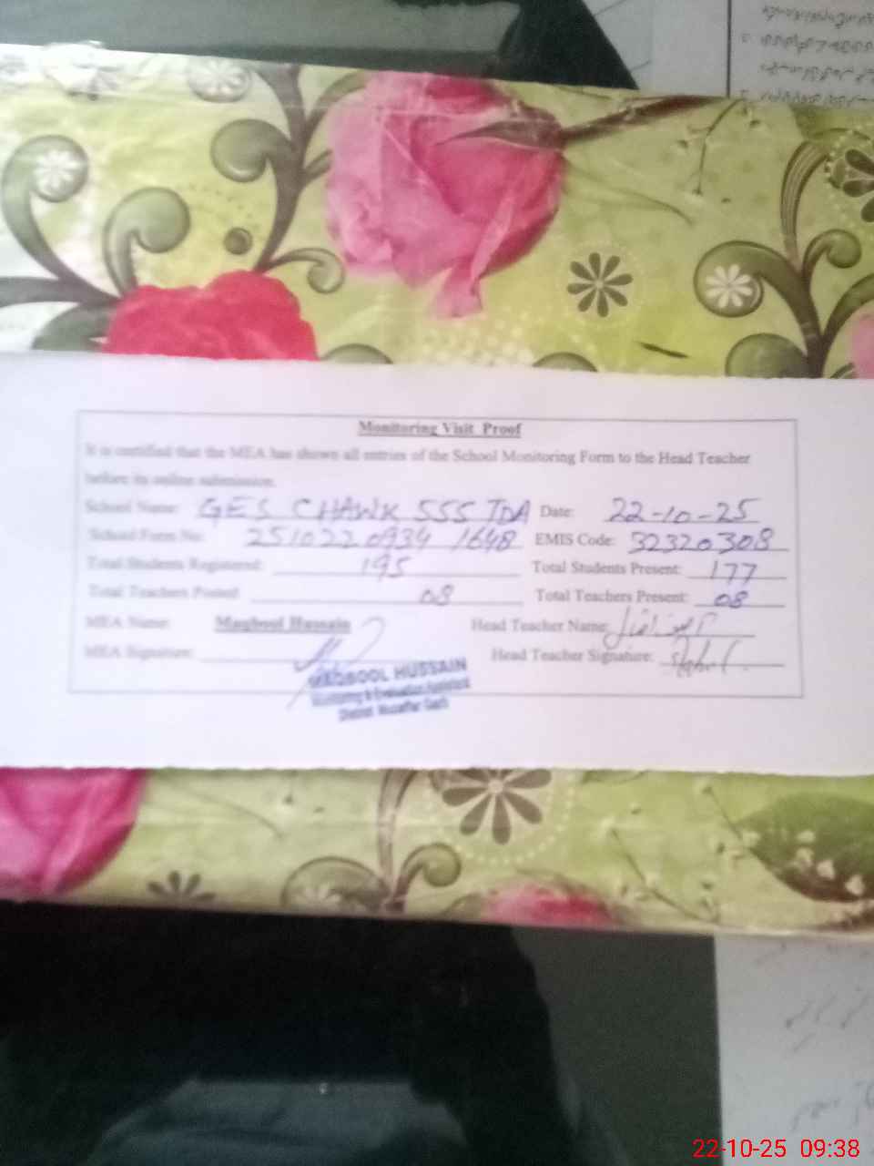 | EMIS Code: 32320308 | Name of School: GES CHAK NO. 555-TDA | |||