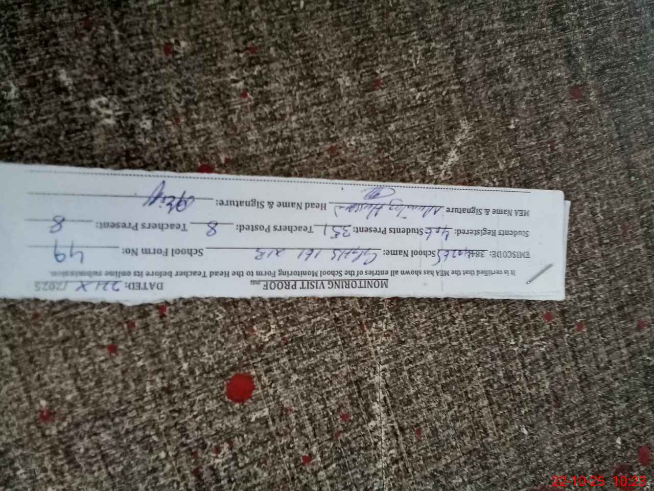 | Monitoring Date: 22-10-2025 | Start Time: 22-10-2025 09:55 AM | End Time: 22-10-2025 10:30 AM | Name of MEA: MU**** HU**** | |
