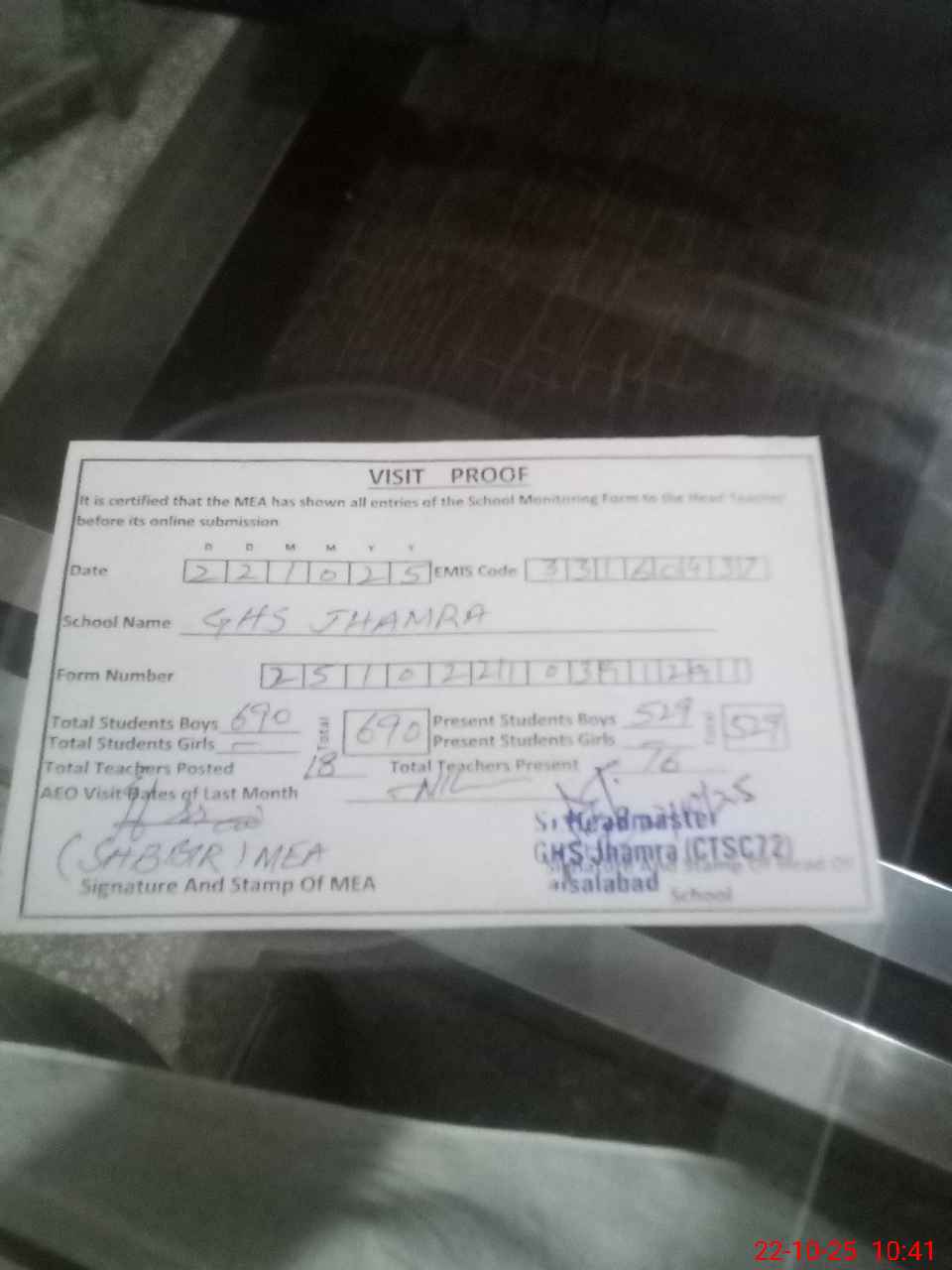 | EMIS Code: 33160437 | Name of School: GHS JHAMRA TANDLIANWALA FSD | |||