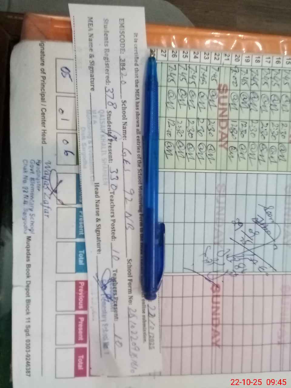 | Name: WA**** ZA**** Designation: (School Headmaster's/Headmistress's) SST Phone/Cell Number: 03**** |