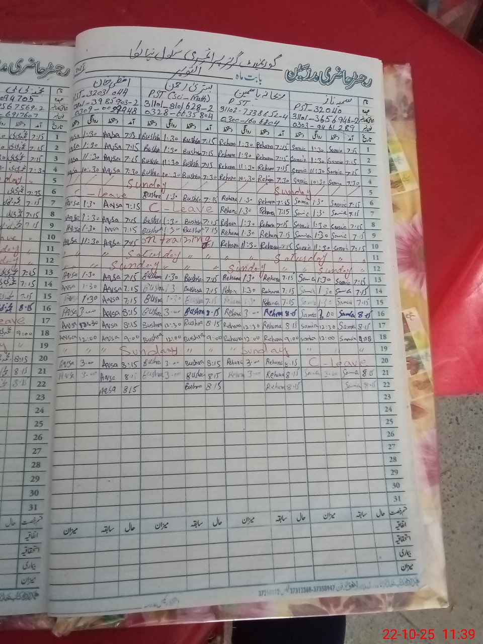 | Name: Bu**** Re**** Designation: (School Headmaster's/Headmistress's) PST Phone/Cell Number: 03**** |