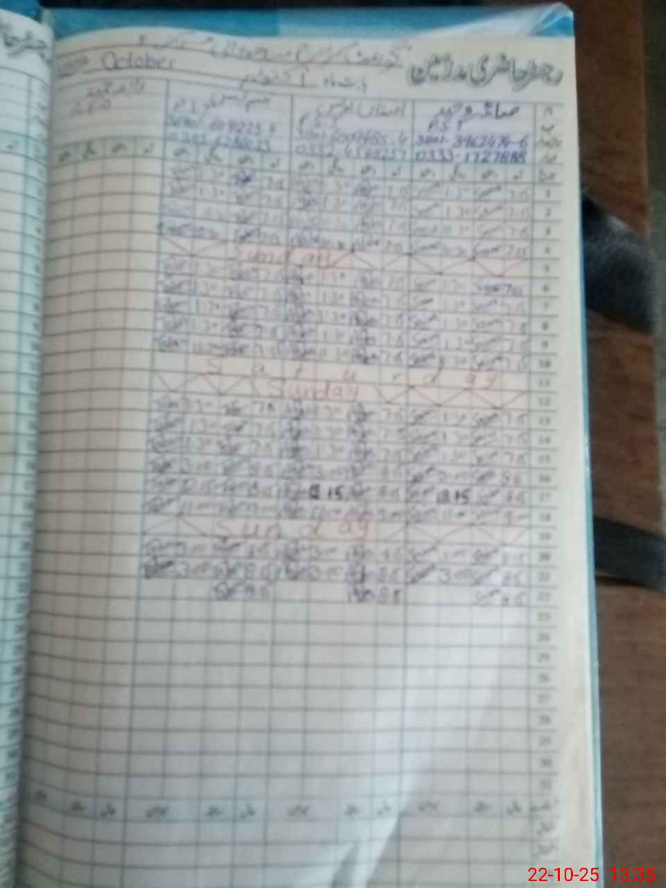 | CNIC | Full Name | Designation | R/C | Absence during last cal. month |