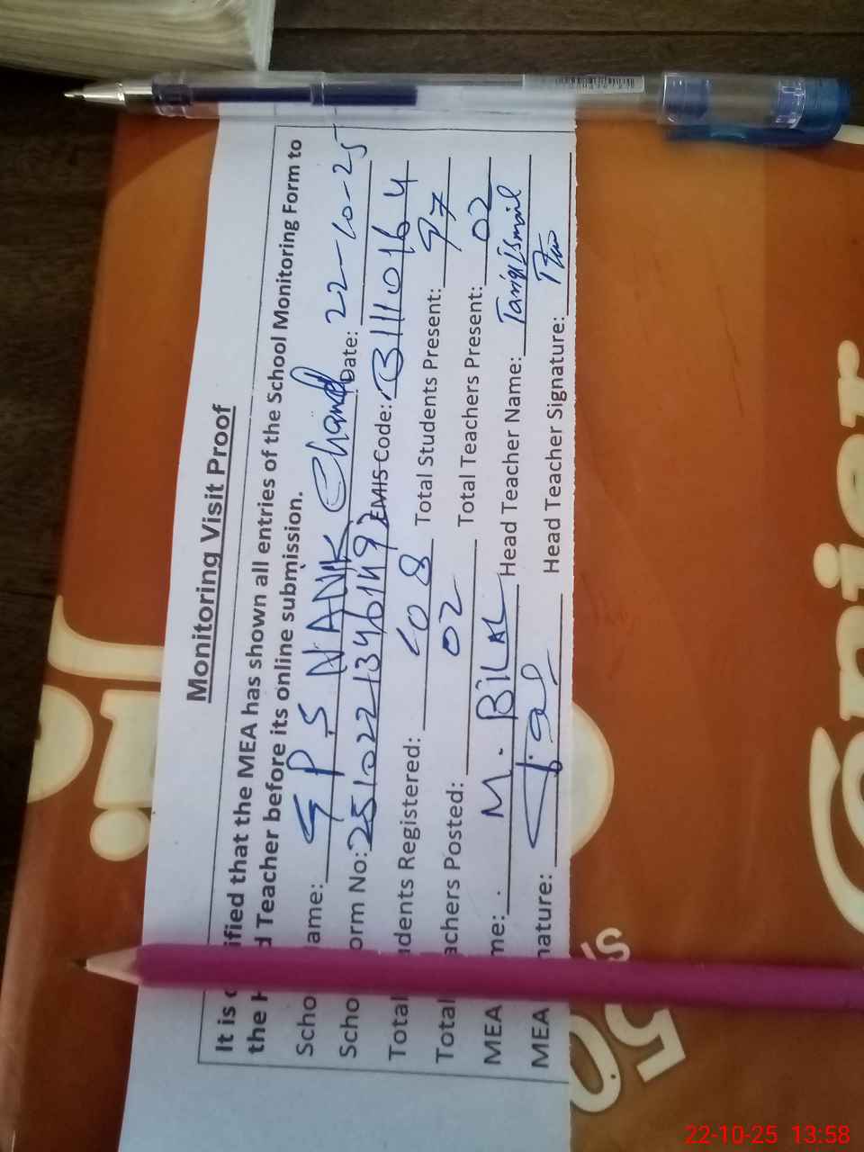| EMIS Code: 31110164 | Name of School: GPS NANIK CHAND | |||