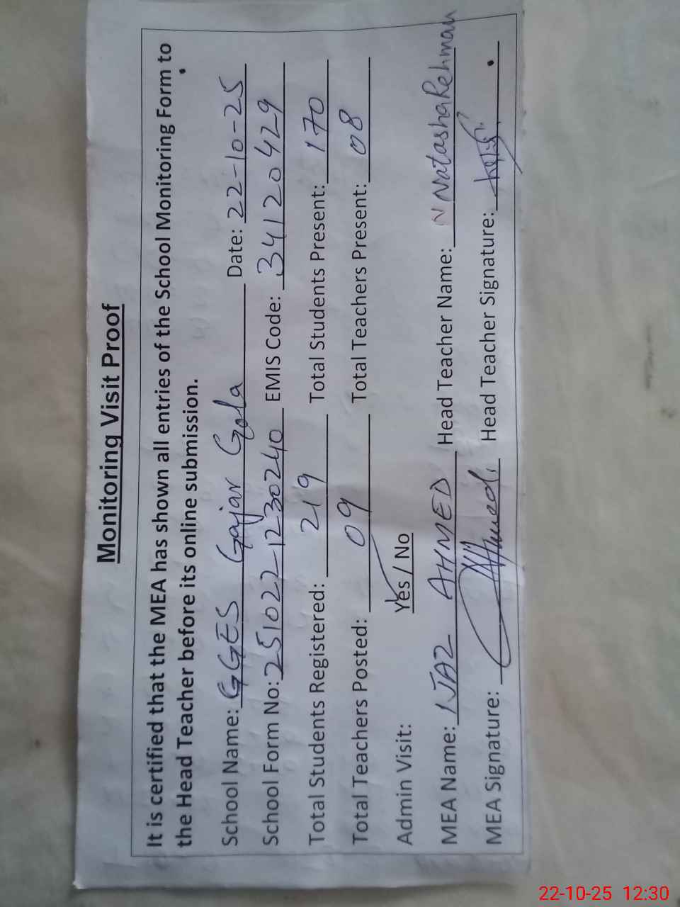 | EMIS Code: 34120429 | Name of School: GGES GAJAR GOLA | |||
