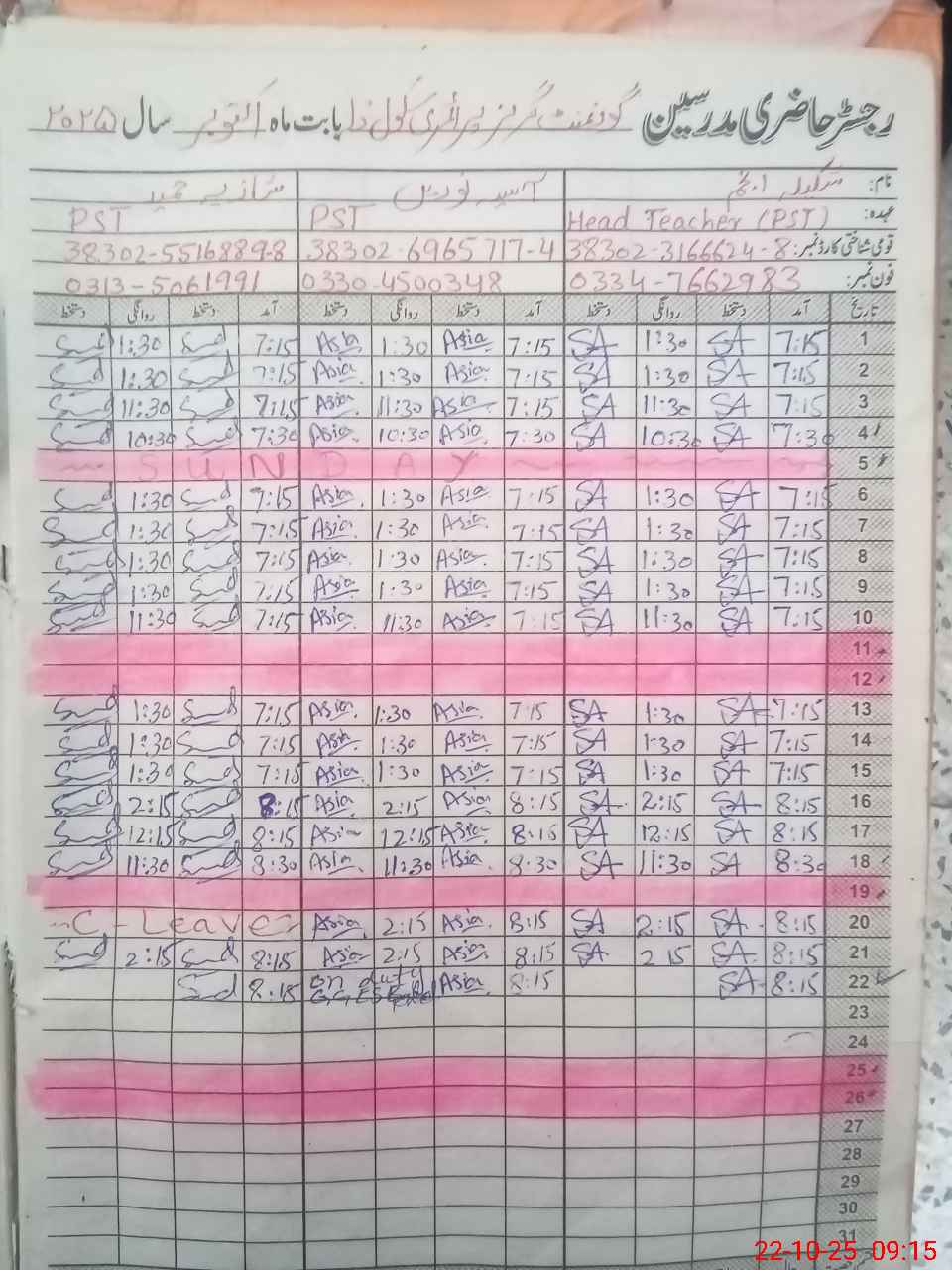 | Name: Sh**** An**** Designation: (School Headmaster's/Headmistress's) PST Phone/Cell Number: 03**** |