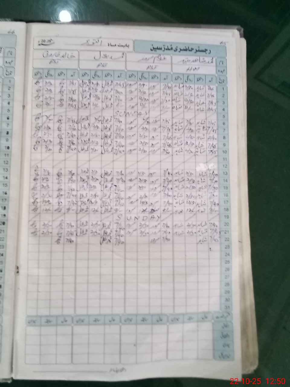 | CNIC | Full Name | Designation | R/C | Absence During Last Calender Month |