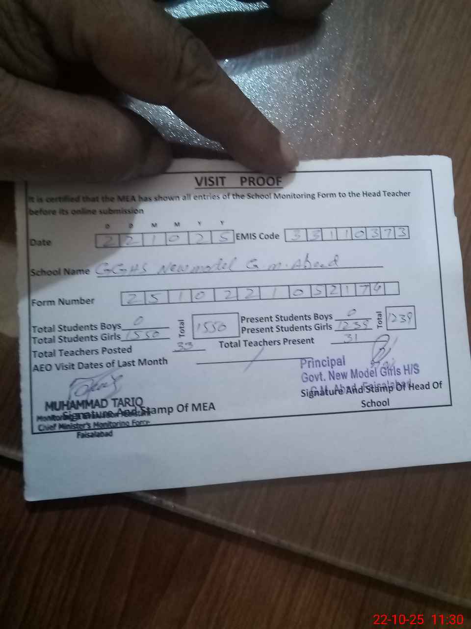| EMIS Code: 33110373 | Name of School: GGHS NEW MODEL GHULAM MUHAMMAD ABAD FSD | |||