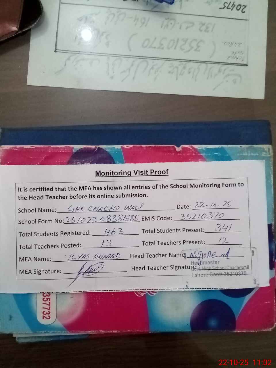 | EMIS Code: 35210370 | Name of School: GHS CHACHO WALI (Newly Upgraded) | |||
