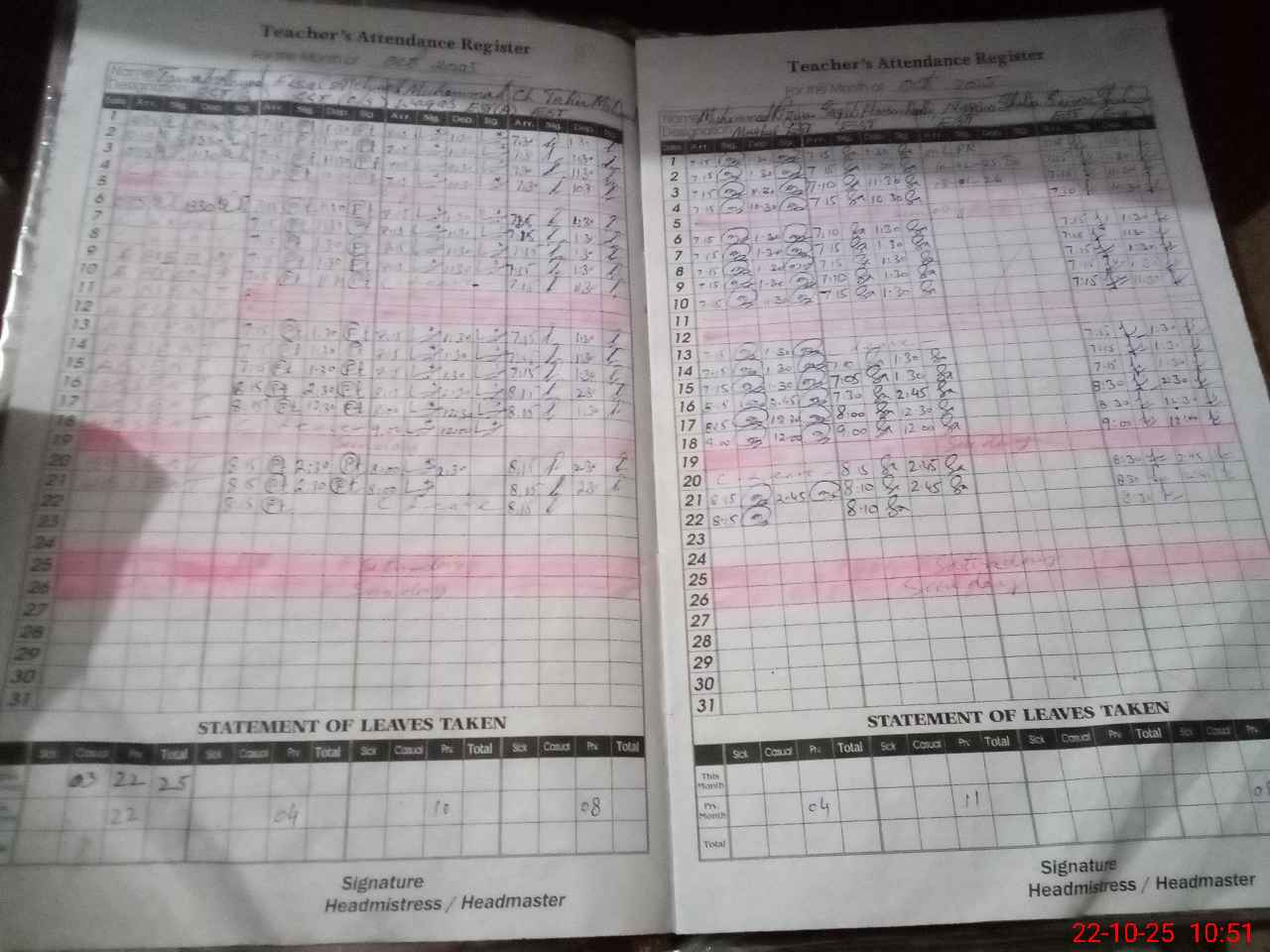 | 37**** | Ta**** Ah**** | SST | Regular | 0 | 0 | 0 | 0 | 0 | 0 | 0 | 0 | 0 | Absent (Un-Authorized) |